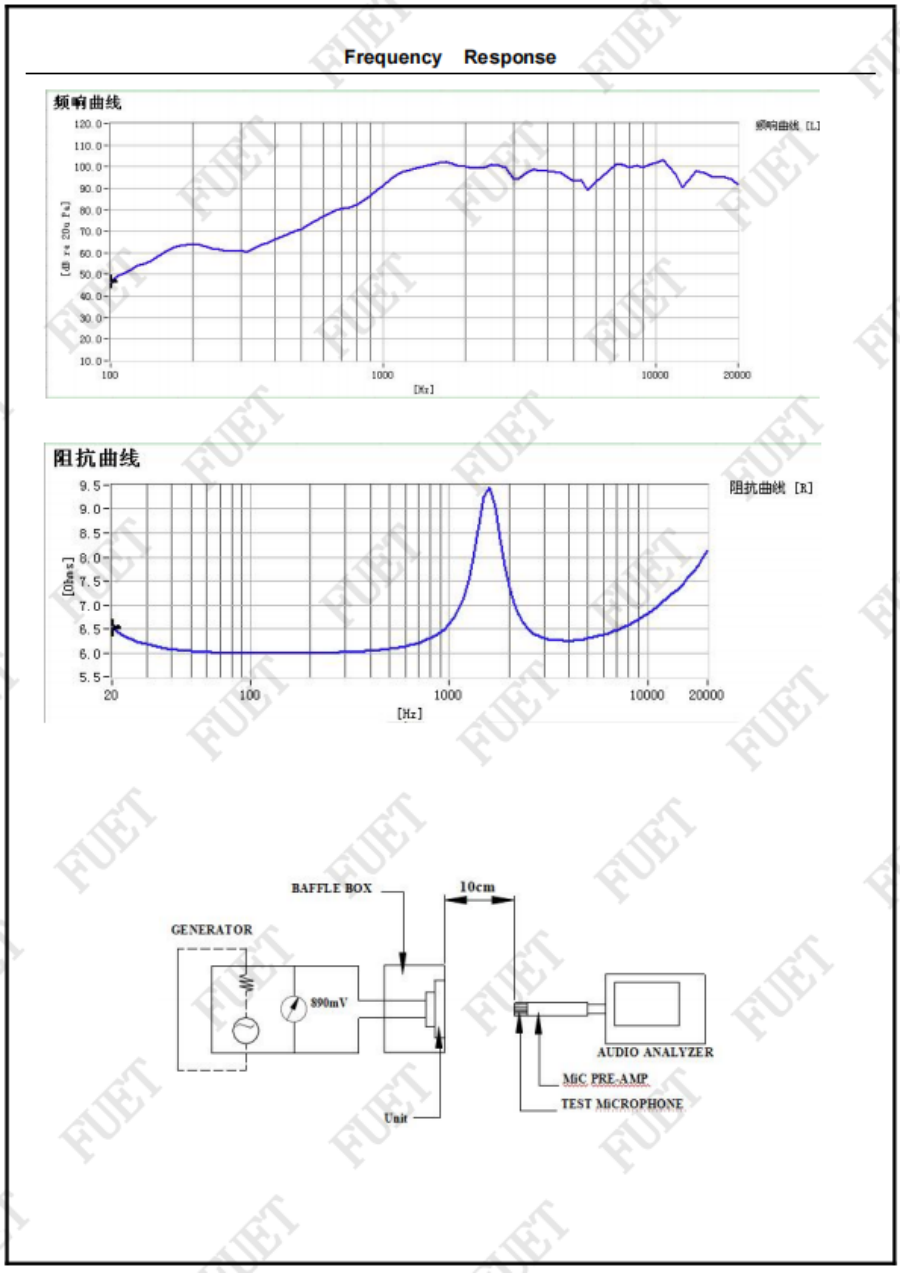 最低共振周波數(shù) 1570Hz±20% Without Baffle